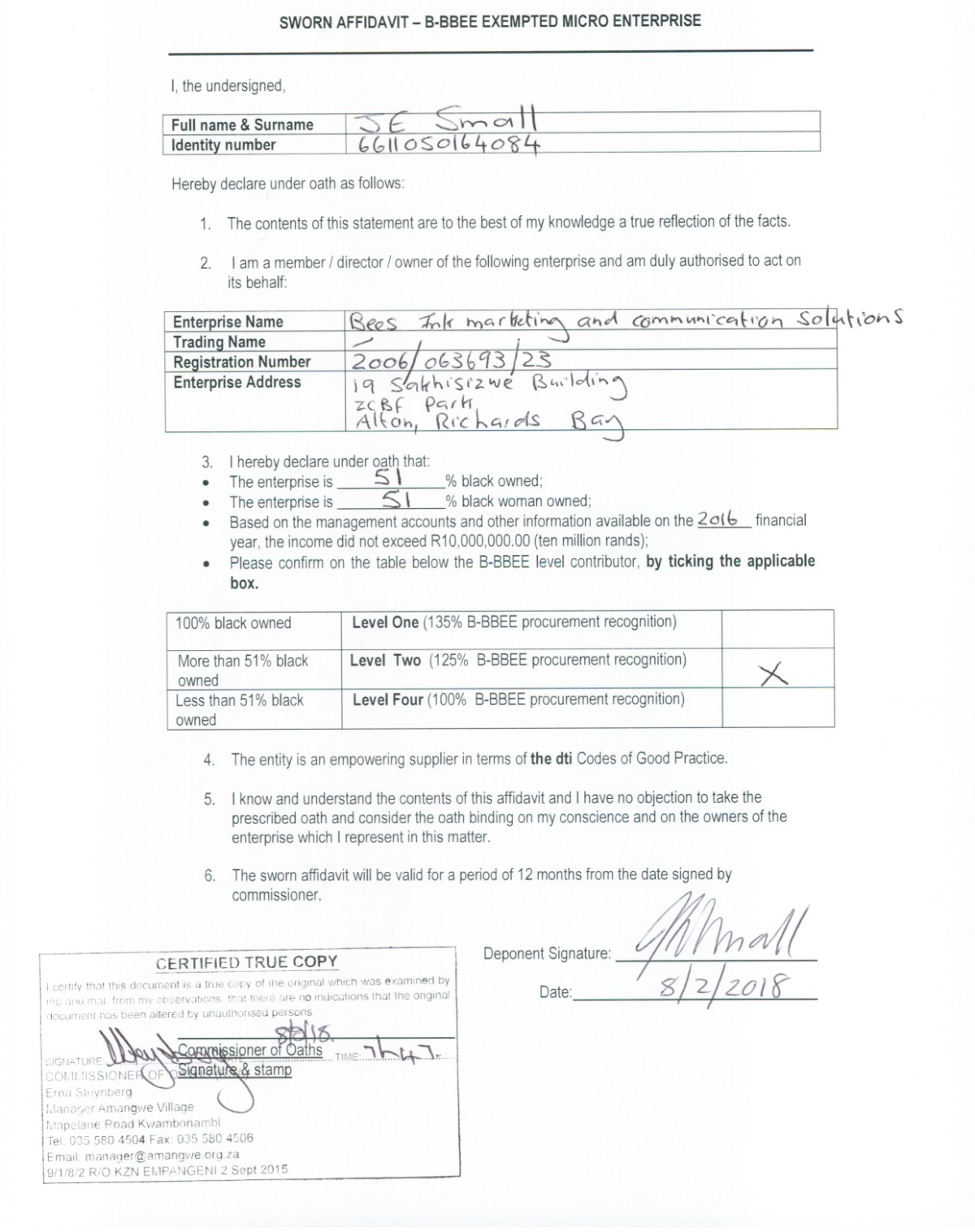 Bees Ink is a certified BEE contributor: Level 2 - View Certificate